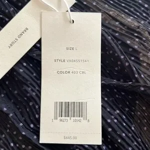 About The Brand: Inspired By The Natural Beauty Of California, Vince Is A Master Of Simplicity And Laid-Back Staples. From Understated Knitwear To Tailored Essentials, Vince's Casual Cool Vibes Are Simply Timeless. Starry Dot Dress In Coastal With Pleated Dot Design, Keyhole Neck, And Elasticized Waistband Approximately 46In From Shoulder To Hem. Slip. Style VX04551541. Color cobalt. Blue with lavender dots. Size Large.