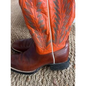 Keywords: Ariat Boots, Men's Cowboy Boots, Western Boots, Leather Boots, Square Toe Boots, Orange Boots, Pull On Boots, Rodeo Boots, Country Boots, Fashion Boots, Mens Footwear, Size 8.5 Boots, US 8.5 D Boots