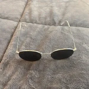 Elegant round sunglasses by Ray-Ban. Black lenses with sleek silver frames.