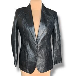 Vintage Angel Skin Tailored Black Leather Blazer Jacket 90s Minimalist Size 12