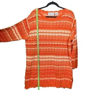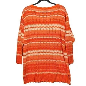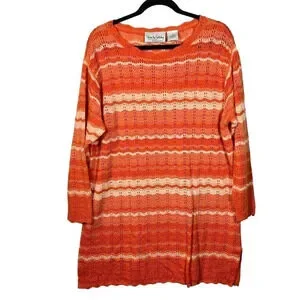 Vintage Diane Von Furstenberg Oversized Orange Striped Crochet Knit Sweater, 1X