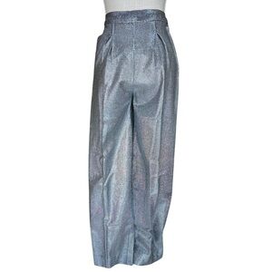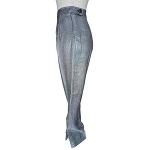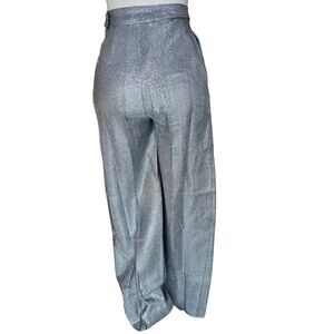 Vintage Custom Made High Waist Silver Mesh Wide Leg Pleat Front Trousers