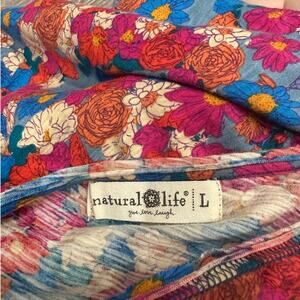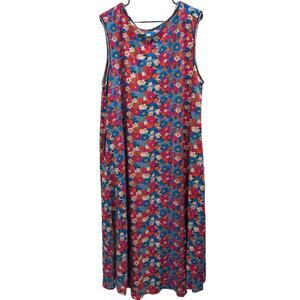 Natural Life Pink Blue Floral Hangout Cotton Jersey Midi Tank Dress Boho Cottage