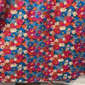 Color: Blue base with pink, orange, white, gold, and blue floral pattern