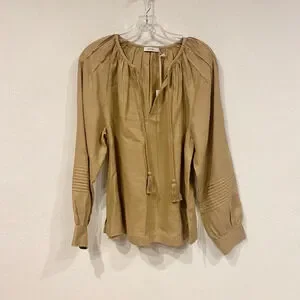 A perfect travel companion that brings out all aspects of you - creative, adventuresome, and goes anywhere easily. The relaxed fit gathers at the neck and beautifully falls along the torso for an easy, always flattering fit. Split v-neckline front with tassel ties and raglan shoulders, it’s finished with pleated sleeves, buttoning cuffs and a side slit. With freedom and comfort to move or stay put, write your memoirs, or dance with the locals—this blouse will awaken the poète in you. Pairs perfectly with the Poète Skirt.