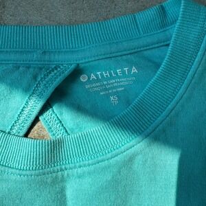 Athleta Sundown Motion Crewneck Sweatshirt XS Gulf Green Keyhole Back