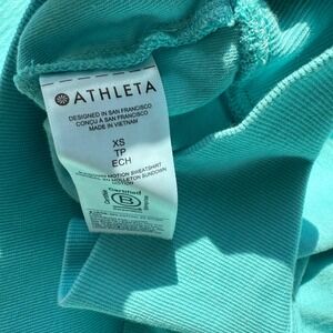 Stay cozy and stylish with this Athleta Sundown Motion Crewneck Sweatshirt in beautiful Gulf Green, size XS. Features a chic keyhole cutout at the back for breathable comfort and a modern twist. Lightweight and perfect for layering, this versatile piece works for yoga, lounge, or casual wear. Excellent pre-owned condition with minimal signs of wear.