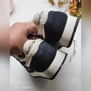Stylish Reebok sneakers. Black with pink accents. Comfortable and durable.