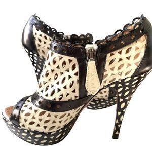 Alaia Black and White Laser Cut Peep-Toe Platform Booties Size 37