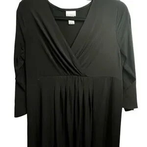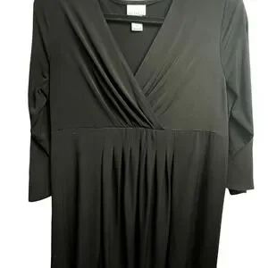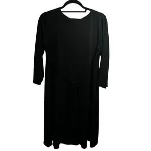 Motherhood Maternity Dress Sz Large Black Long Sleeve Stretch Waist Tie