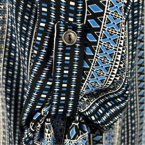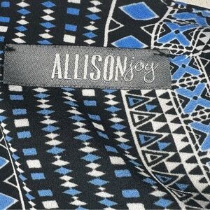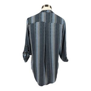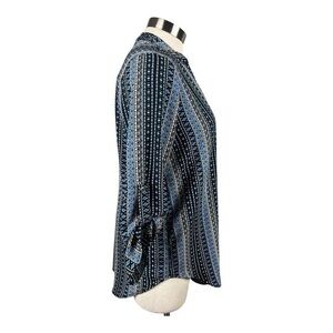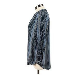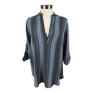 Evereve Allison Joy Navy Blue Print 3/4 Length Sleeve Top Medium