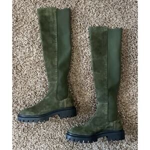 Stuart Weitzman Olive Knee High Lug Boots Stretch Shaft Combat EU 35.5 US 5B