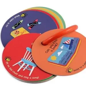 TODDLER TIME: A perfect first game for little ones! Toddler Scavenger Hunt cards contain 20 double-sided sturdy cards that provide simple, satisfying questions and prompts to guide your toddler. After your chiild finds each item, ask them to perform the activity. "Can you find a pot?" . . . "Turn it over and play it like a drum!" "Can you find a chair?" . . . "Sit in it and sing a song!" Finished playing the game? Add your own prompts to extend game play and spark conversation with your child