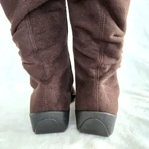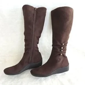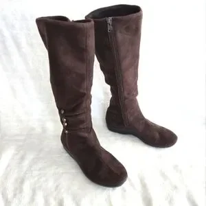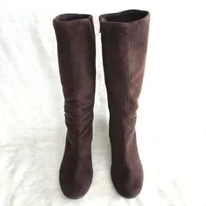 Womens Elegant Brown Knee-High Boots Sz 7.5 Casual Comfort Low Wedge Heel