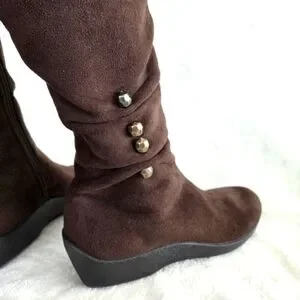 The boots are designed in a casual style with a low wedge heel, perfect for everyday wear.