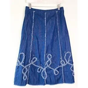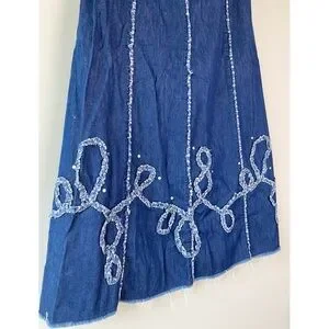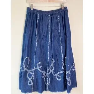 Reba Womens Denim Midi Skirt M Cowgirl Boho Festival Studded Pull On Cottagecore