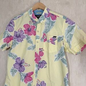 Chubbies Men’s Yellow Floral Hawaiian Button Down Shirt Shortsleeve Size M