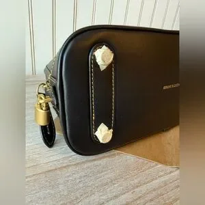 Elegant black satchel with gold accents. Features top handles and signature Coach tag. Never used, stored in the coach dust bag.