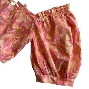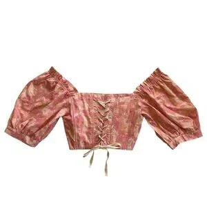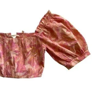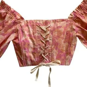 Karlie Floral Poplin Puff Sleeve Tie Back Corset Off Shoulder Crop Top Size L.