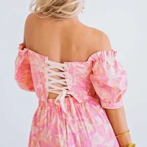 Karlie Floral Poplin Puff Sleeve Tie Back Corset Off Shoulder Crop Top Size L