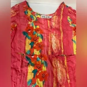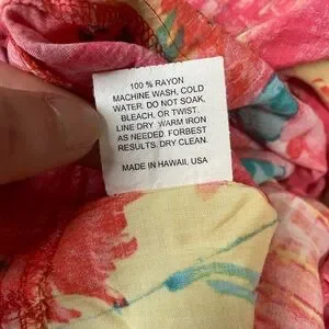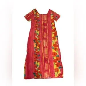 Excellent condition! Gorgeous dress! Split with buttons and pockets with buttons. Lightweight. Made in Hawaii
