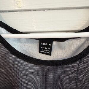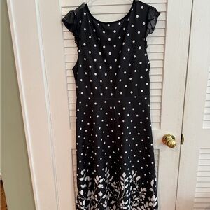 Black Polka Dot Dress – Mesh Yoke Ruffle Sleeve – Size L