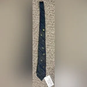 Preppy with a twist, this striped silk tie is adorned with intricate embroidery and embellishments.
