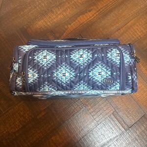 Quilted travel cosmetic bag with multiple zip compartments, wipeable lining, and top handle. Ideal for makeup, toiletries, carry-on packing, or road trips. Lightweight, organized, and travel-ready.