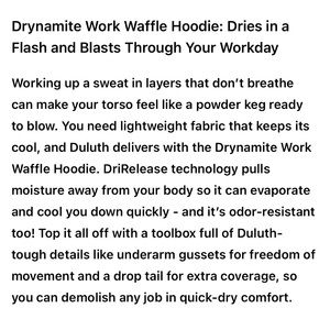 NWOT Duluth Trading Drynamite Work Waffle Pullover Hoodie