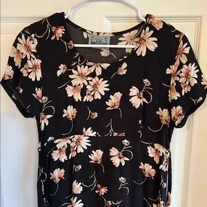 Elegant black dress with a beautiful floral pattern. Perfect for any occasion. Ties in the back, absolutely stunning and in amazing condition!