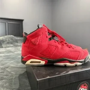 Stylish red sneakers with black accents. Comfortable and durable design. Perfect for active kids.