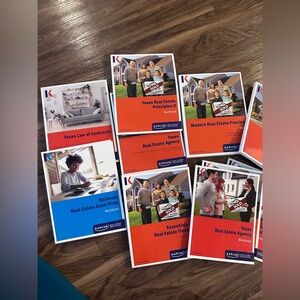Comprehensive Kaplan real estate workbook set. Includes Texas Real Estate Principles, Modern Real Estate Practice, and more. Perfect for exam preparation.