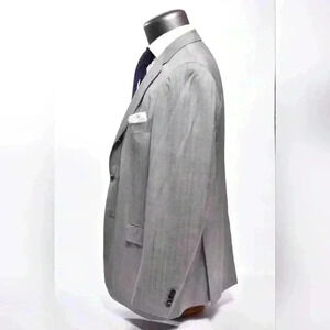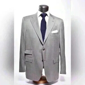 Fantastic quality from the venerable Italian house of Raffaele Caruso. Very fine wool cloth in a light grey herringbone pattern, size 46R, made in Italy