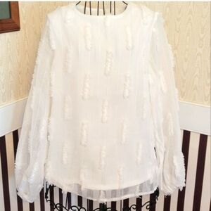 SHEIN Swiss Dot Long Sleeve White Top Size Small