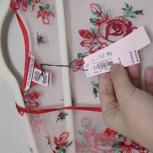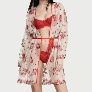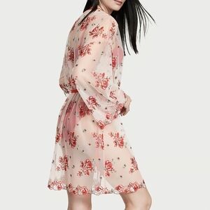 Victoria's secret women's sheer mesh evening blush rose floral embroidered robe