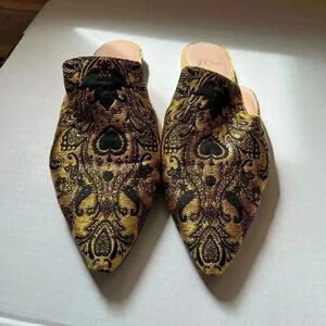 JCrew Pointed Toe Slip-on Slides in Brocade Marigold and Black Size 7