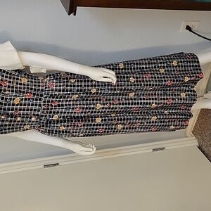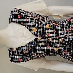 VTG ELISABETH 1980s Floral Cottage Prairie Land Girl 2Fer Shirt Dress