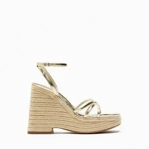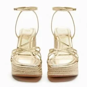 Zara limited edition gold metallic leather platform sandal