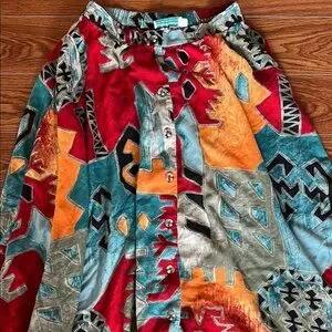 Handmade in Mahone Bay, Nova Scotia. One of a kind Vibrant skirt featuring a bold geometric pattern. Perfect for adding a pop of color to your wardrobe. Beautiful, amazing condition. Size Small.