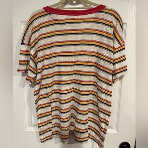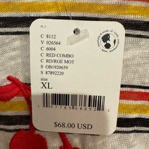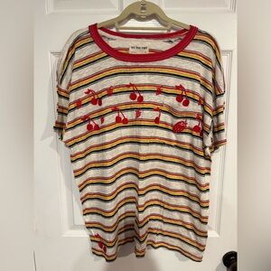 Red, cream, yellow striped tee shirt with red embroidered cherries. Oversized loose fit. Size XL. New with tags. Original price $68.