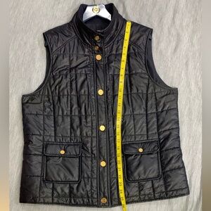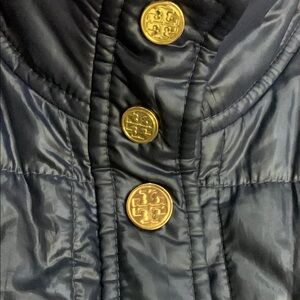 Tory Burch Dark Blue Quilted Vest with Gold Accents