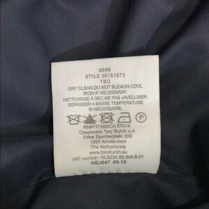 This elegant black quilted vest by Tory Burch showcases a sophisticated diamond pattern and a structured silhouette, making it an ideal choice for layering during cooler weather. The vest is designed with a standing collar, which not only enhances its refined aesthetic but also provides additional warmth and protection against the elements. Its hip-length cut ensures a flattering fit, accentuating the waist while offering ample coverage.