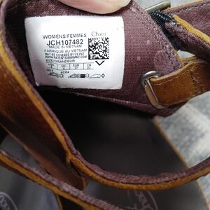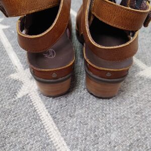 Chaco brown leather Cataluna clogs with wraparound strap and buckle closure. A few minor scuffs on uppers but in overall great condition!