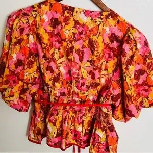 AVARA Nicolette Floral Balloon Sleeve Top vibrant, multicolor peplum