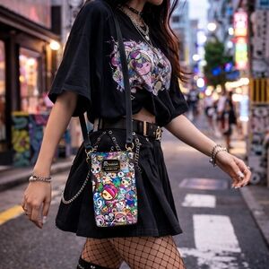 Carry your essentials in iconic Tokidoki style. This limited edition crossbody phone bag features vibrant, collectible character artwork and sleek gold-tone hardware for a playful yet polished look.