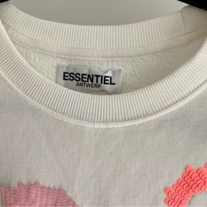Add a splash of color to your wardrobe with the Essentiel Floral Sequin Top. This short sleeve design features vibrant pink and white hues, perfect for any occasion.