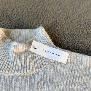 Topshop cream mock neck sweater, brand new with tags. Medium-weight knit with a relaxed, slightly boxy fit. Ribbed neckline, cuffs, and hem. Easy neutral for everyday wear and layering.