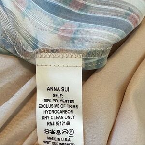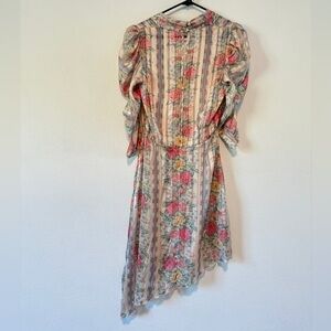 Anna Sui Whisper Rose Floral Striped Asymmetrical Puff Sleeves Cream Dress 6