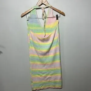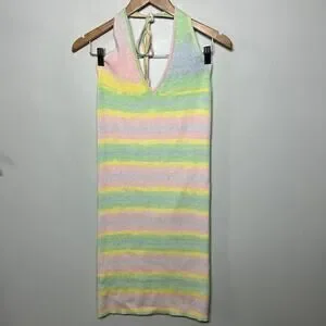 Wild Fable NWT Dress Pastel Rainbow Striped Knit Halter Summer Vacation Beach