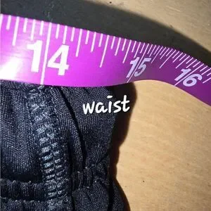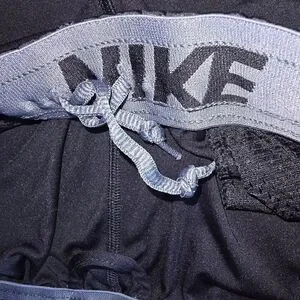 Gently used Nike basketball shorts. Black with a gray Swoosh logo on the lower leg. The tag is worn, but they fit like a Small or Medium (see measurements). Features two side pockets and a front drawstring. Please see photos for details.